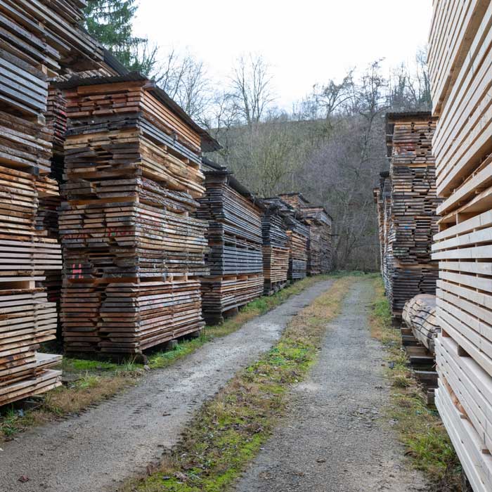 Nach dem Einschnitt gelangt das Holz in unser Schnittholzlager. Hier spielt Zeit eine entscheidende Rolle. Gesägtes Material muss kontrolliert und gleichmässig trocknen, um Spannungen zu vermeiden und seine Formstabilität zu bewahren. Durch fachgerechtes Stapeln mit Abstandshaltern schaffen wir optimale Bedingungen für die Lufttrocknung.